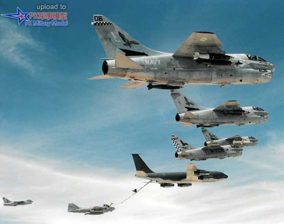 然而,毫无疑问,经历了敌人所有的高射炮和地空导弹之后,A-7飞行员最关心的似乎是空中加油,天上挤满了聚集在美国空军KC-135加油机周围的其它飞机,这些飞机的短耦合吊篮-软管装置充其量只是临时事务,以满足各种海军飞机的需求。美国海军和美国空军的不同理念使得加油设备的设计在美国海军发展成为一种接收-驱动的过程,而美国空军加油机上的加油杆操作员则指导着加油的轮番顺序。