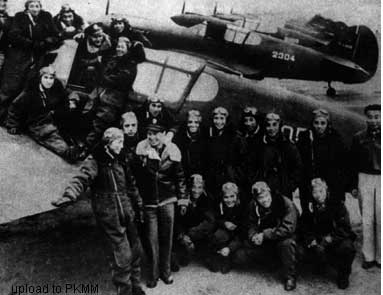 1943年初的梁山机场上,4PG大队23PS中队的队员们在新交付的P-40E/K前。23PS中队长于1943年6月6日驾驶P-40在日本陆航奇袭梁山的行动中一战成名,他冒着落下的炸弹起飞升空,打下了2架キ-48,第3架因为伤势过重而迫降坠毁。第二架P-40K(2340号机)于1943年5月31日参加了另一场空战,在空袭荆门机场的任务里,臧锡兰驾驶此机击落了约翰.艾利逊少校身后的一架キ-44。