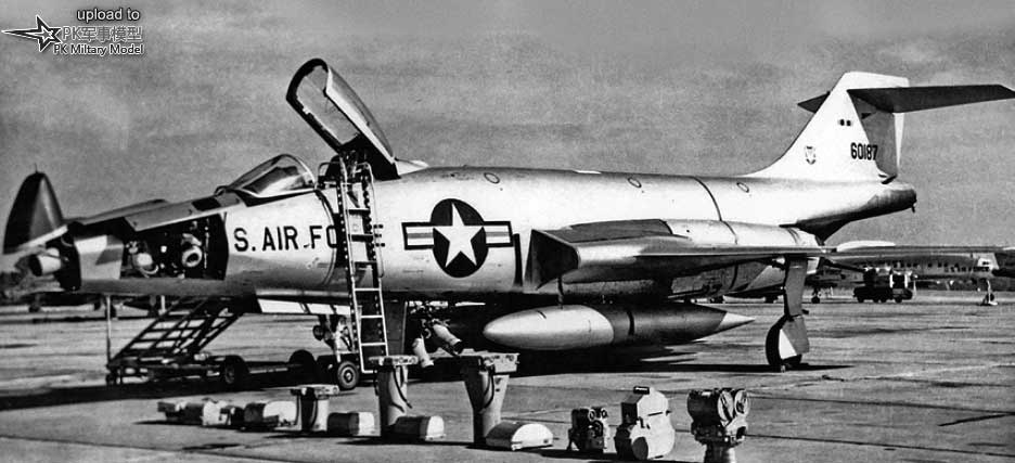 363TRW联队的RF-101C-50-MC 56-0187刷有基本的战术空军司令部涂装,旁边展示了一排各种不同的相机。垂直分体式的KA-1每一台都重150磅,并从座舱后方的照相舱里被放下,前方这排相机的中央也能看见被竖起的KA-1相机。6英寸焦距的KA-2相机带着倾角被安装于前方的照相舱里,12英寸焦距的KA-2相机和A9B胶卷夹在机鼻前端清晰可见,它可以被换成小幅面的KA-45相机。