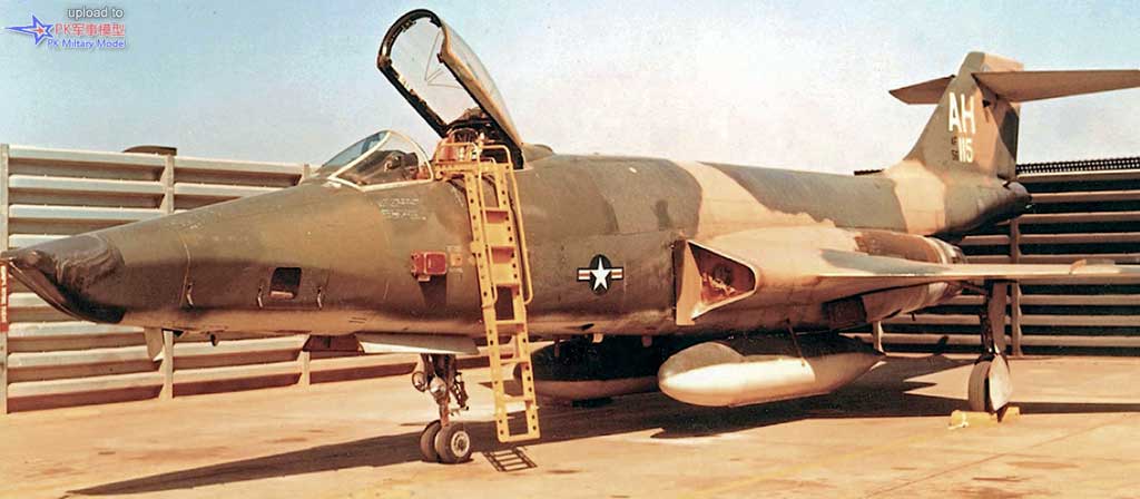 从1968年中起,新山一机场460TRW联队的RF-101C被赋予了AH的尾码,指出其隶属于45TRS中队第1分遣队,和他们驻扎在一起的12TRS中队的RF-4C刷上了AC的尾码,16TRS中队的RF-4C尾码则是AE。这架RF-101C-75-MC 56-0115之前隶属于66TRW联队,正在护栏内的烈日下暴晒。发动机进气道盖板可以防止越共工兵向里面扔手雷,但到了夜里,打开舱盖的座舱绝对是一个诱人的目标。